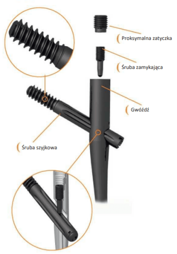 - Rowki w śrubie szyjkowej w celu zabezpieczenia przed rotacją SHS i ograniczenia ześlizgu